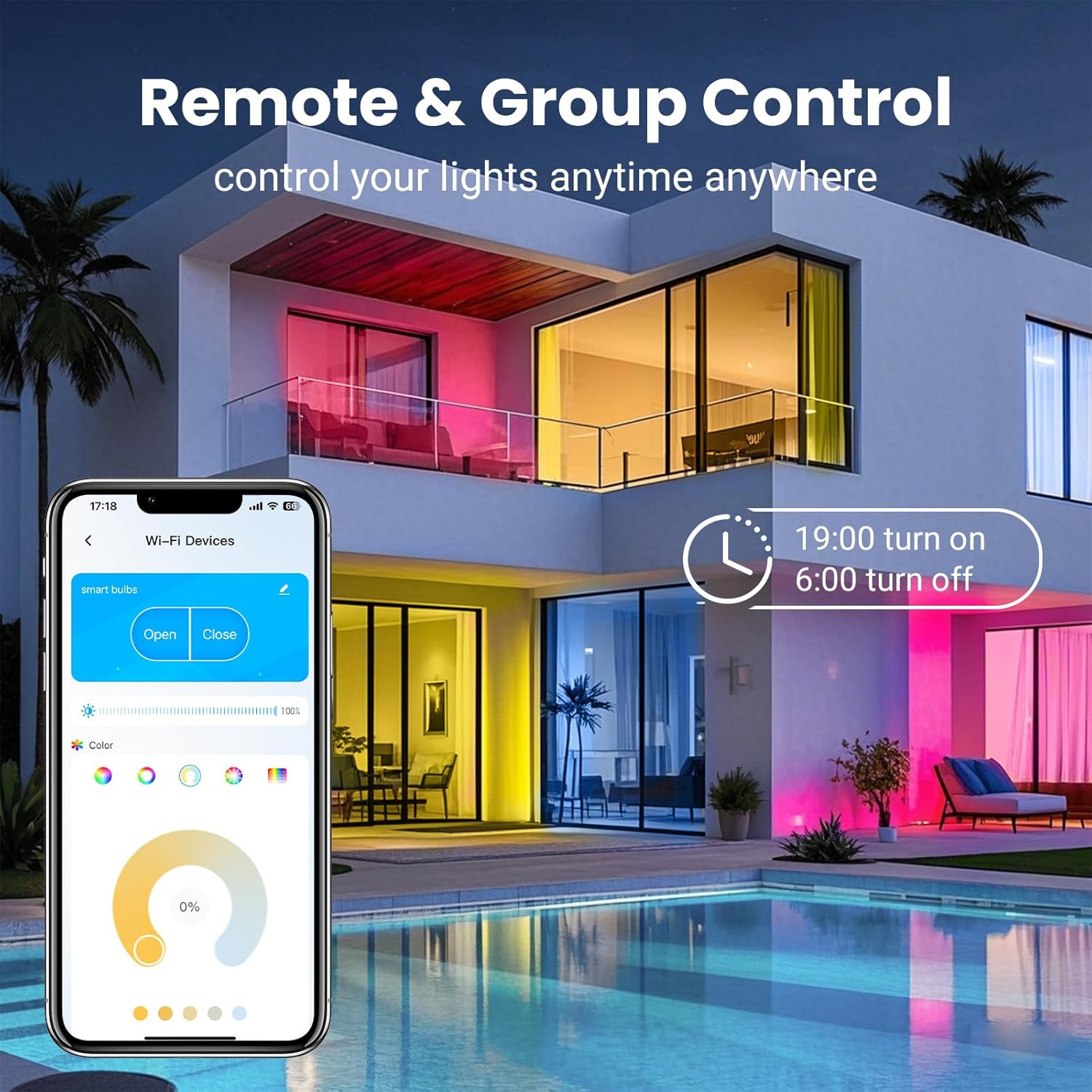 Download and open the "Daybetter" APP, click on the "Group Control" at the top of the page, and then add the smart bulbs to the corresponding group.